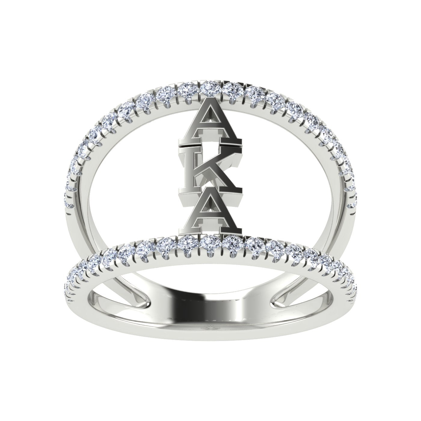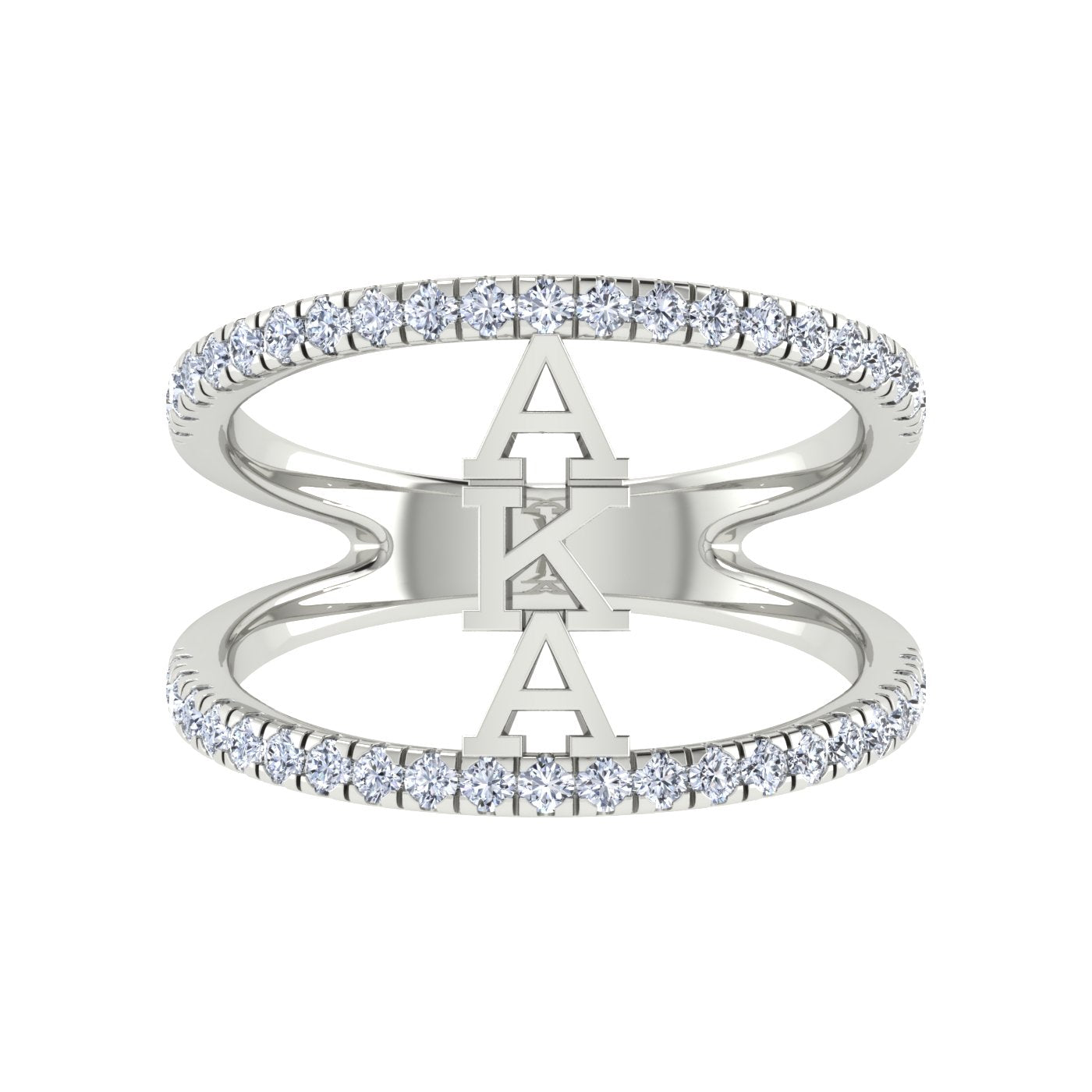 Show your Alpha Kappa Alpha pride with this elegant sterling silver ring. Featuring a sleek double-band design lined with sparkling cubic zirconia, it highlights the bold AKA Greek letters at its center. Crafted from 925 sterling silver, this timeless piece is perfect for celebrating your lifelong sisterhood.