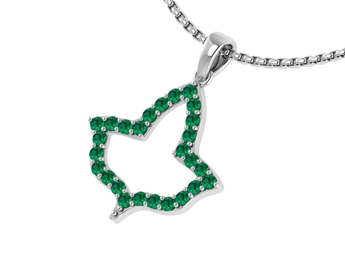 Alpha Kappa Alpha Green Ivy Leaf Large Silver with White Crystal Necklace (P026)