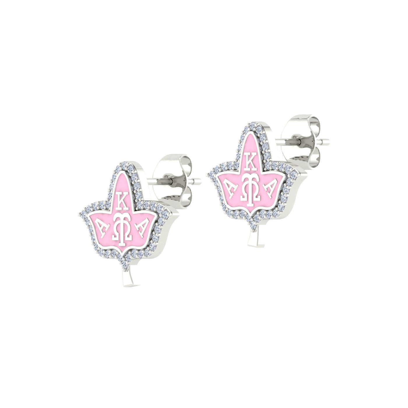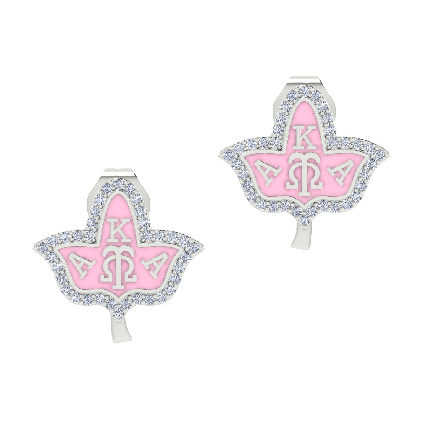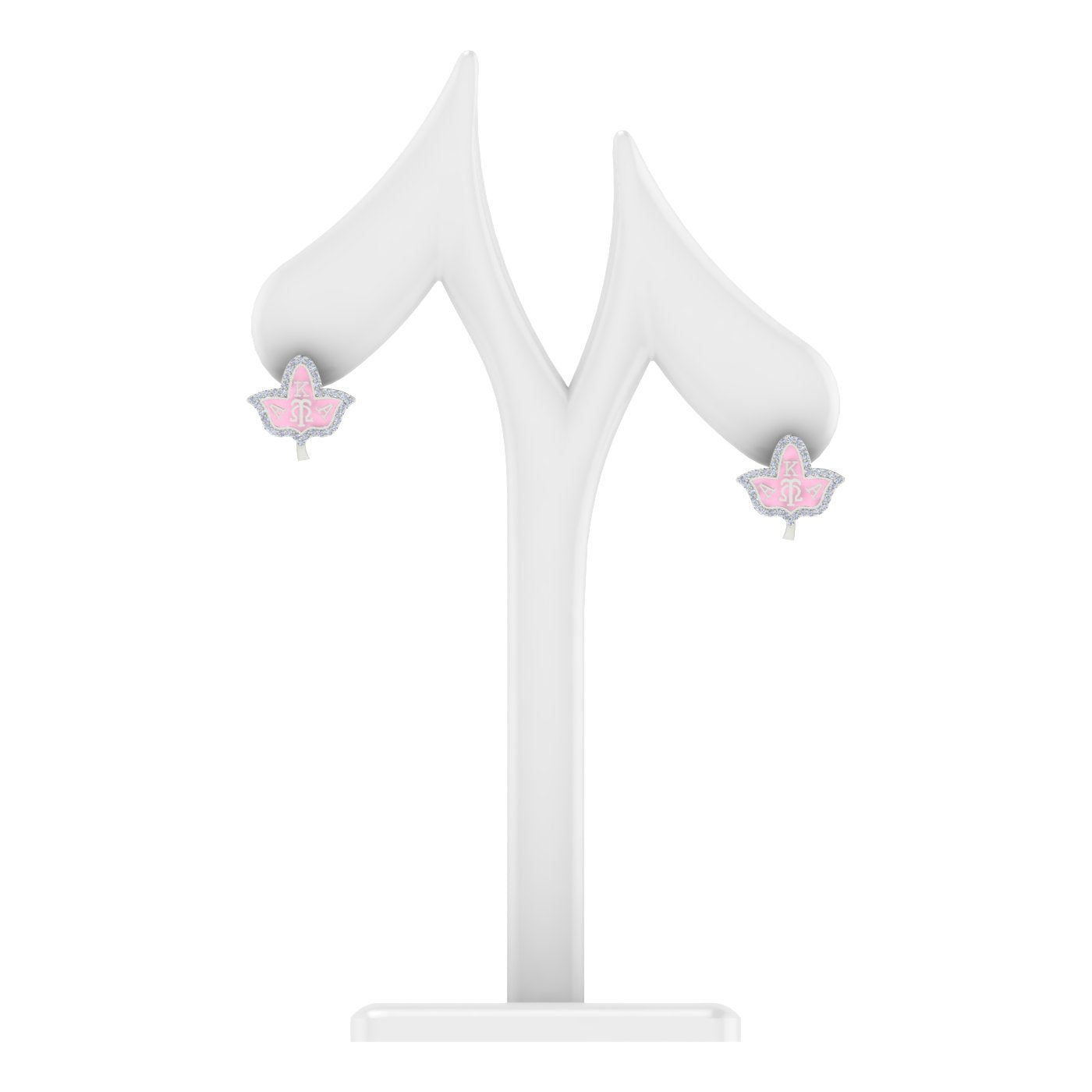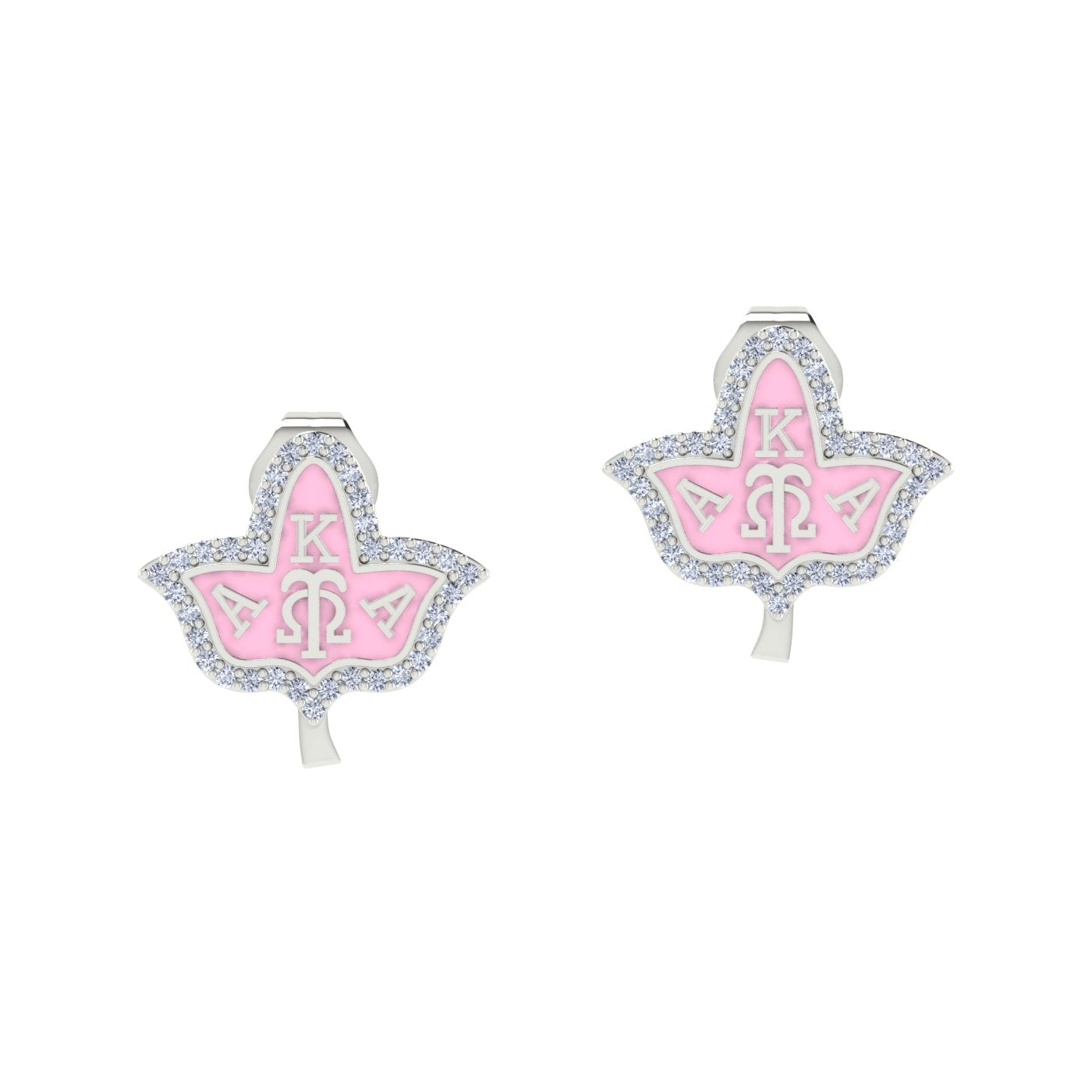 Sparkle with sorority pride in the Alpha Kappa Alpha Ivy Earrings (AKA‑E010) — crafted from .925 sterling silver, lavishly studded with clear white crystal stones for a radiant, iced‑out shine and pink enamel. Each stud earring features the iconic ivy leaf design—representing growth, fellowship, and the enduring legacy of Alpha Kappa Alpha Sorority, Incorporated®. Packaged in a beautifully branded box, this officially affinity‑licensed piece reflects King Greek’s commitment to quality and authentic Greek style.
