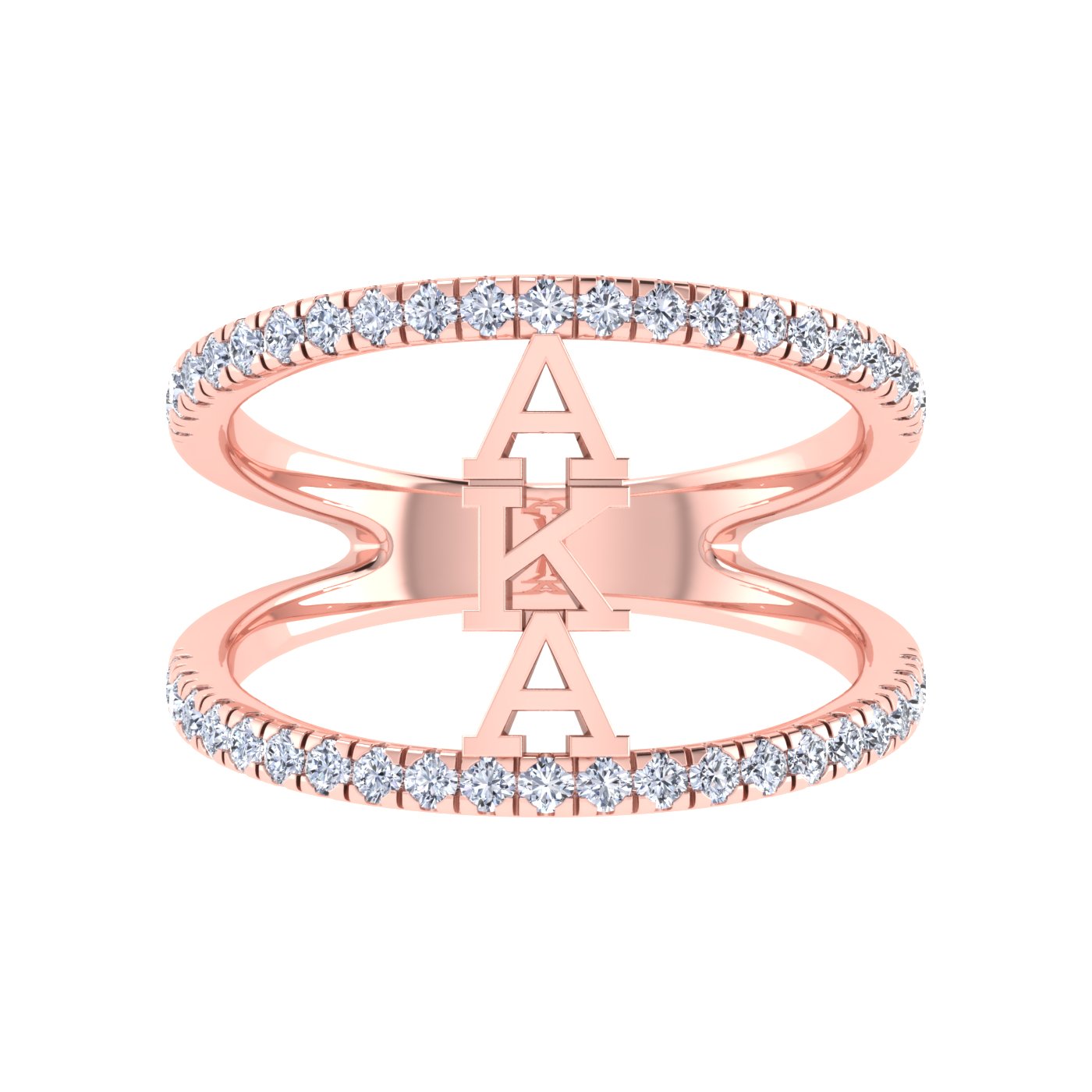 Show your Alpha Kappa Alpha pride with this elegant sterling silver pink plated ring. Featuring a sleek double-band design lined with sparkling cubic zirconia, it highlights the bold AKA Greek letters at its center. Crafted from 925 sterling silver, this timeless piece is perfect for celebrating your lifelong sisterhood.
