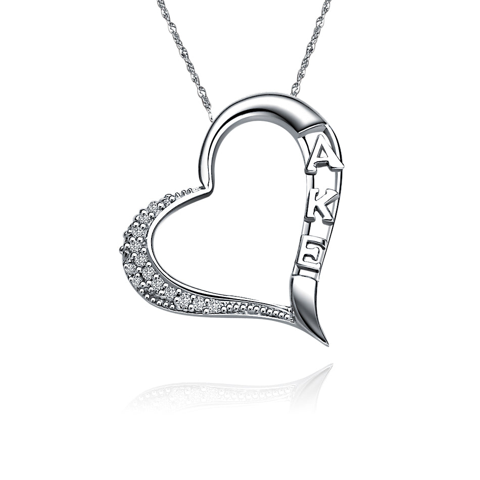 Celebrate your connection to Alpha Kappa Epsilon with this elegant Sweetheart Lavalier Pendant. Crafted from premium .925 sterling silver, this heart-shaped design features sparkling cubic zirconia accents and the AKE Greek letters along the side, symbolizing love, loyalty, and fraternity pride.