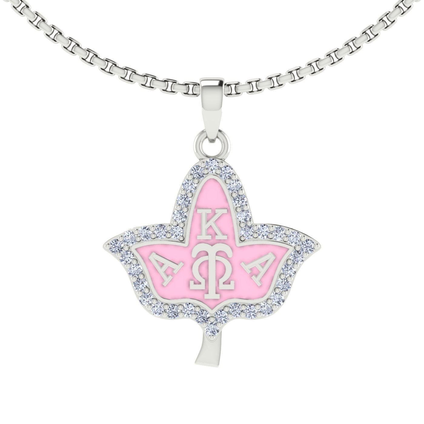 Celebrate your Alpha Kappa Alpha Sorority, Incorporated® pride with this exquisite Ivy Leaf Necklace, crafted from premium .925 sterling silver. The iconic Ivy Leaf pendant is beautifully accented with sparkling white cubic zirconia stones and vibrant pink enamel, embodying the spirit, growth, and sisterhood of AKA.