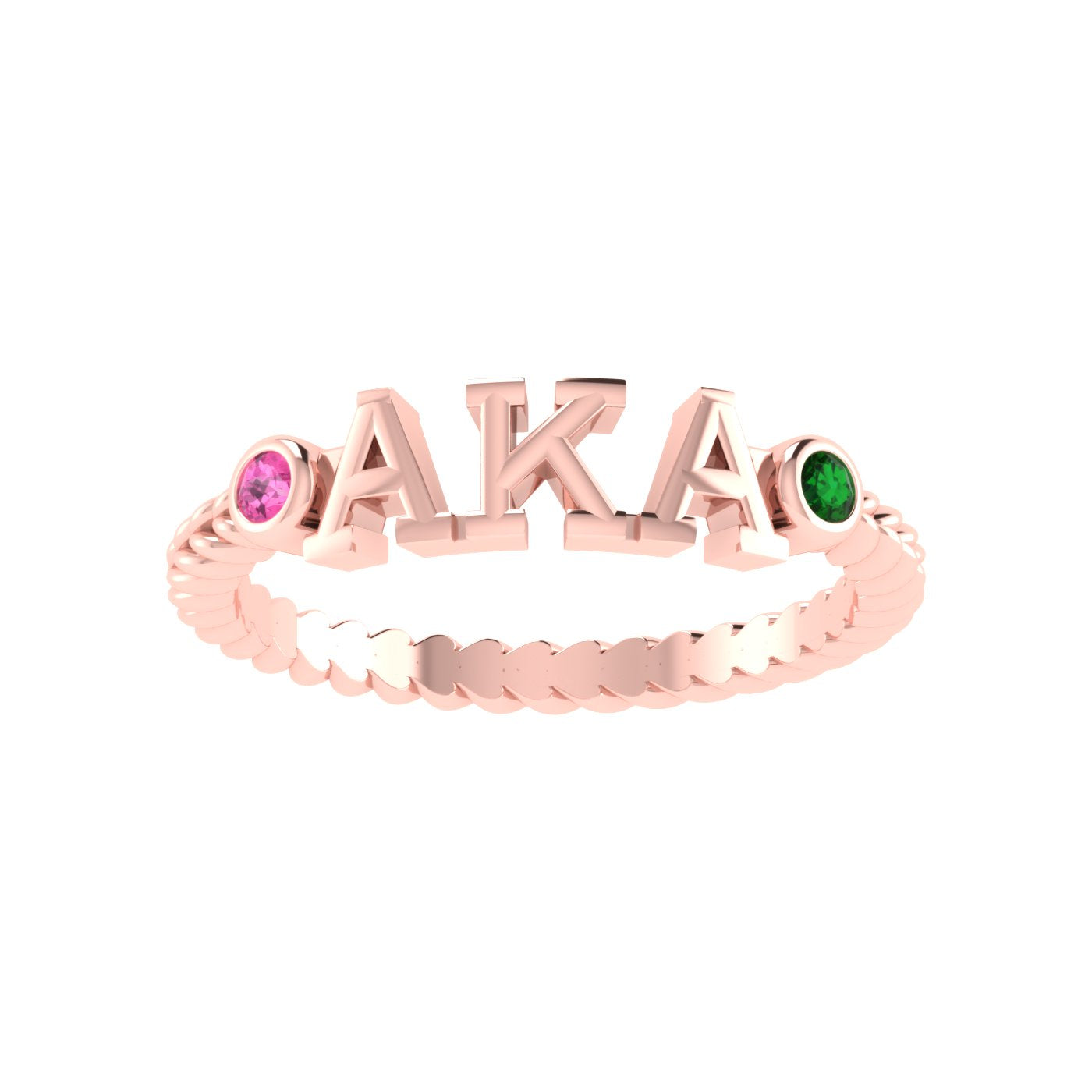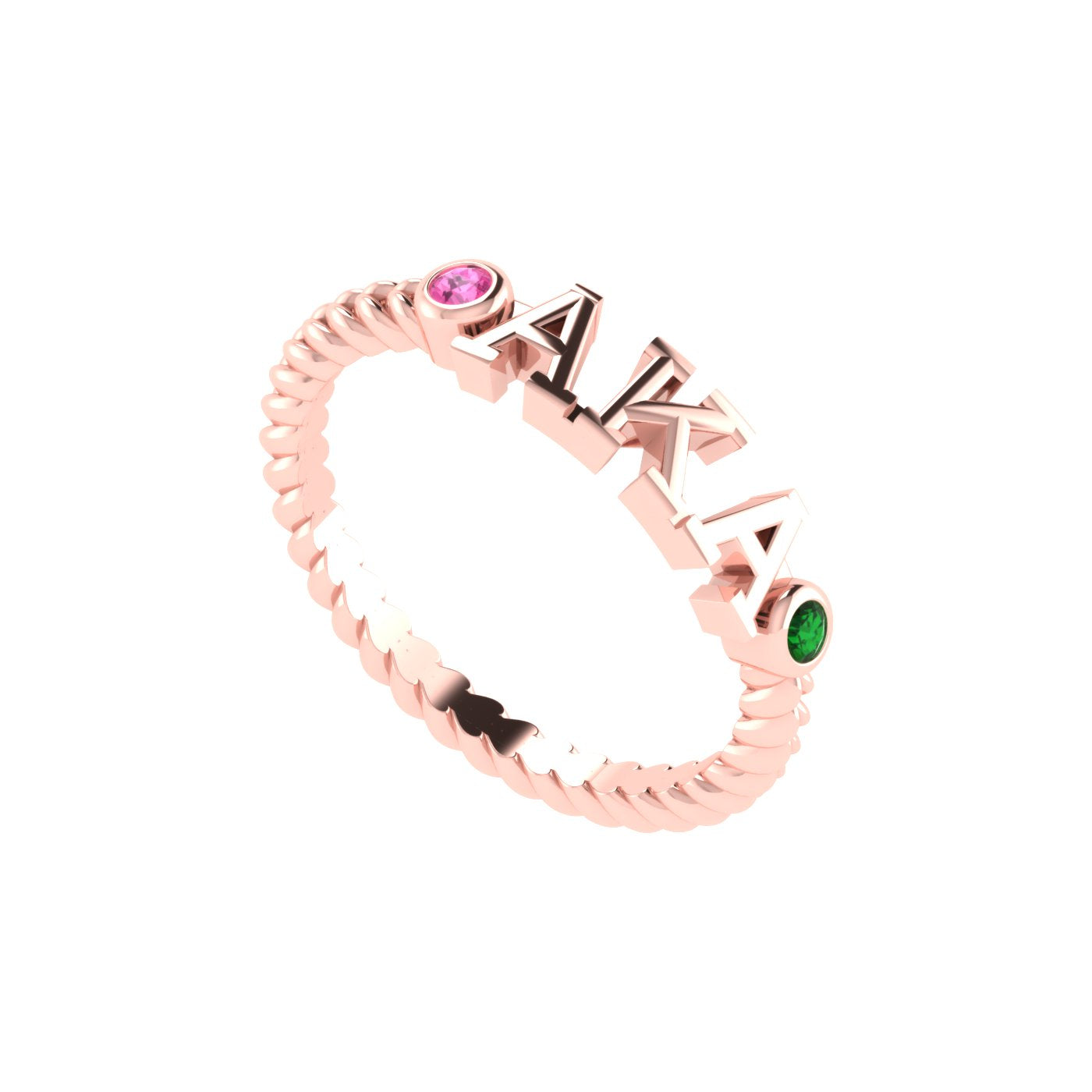 Twisted Rope Band Design: A textured, rope-style shank that symbolizes the strength and unity of Alpha Kappa Alpha Sorority, Incorporated®.