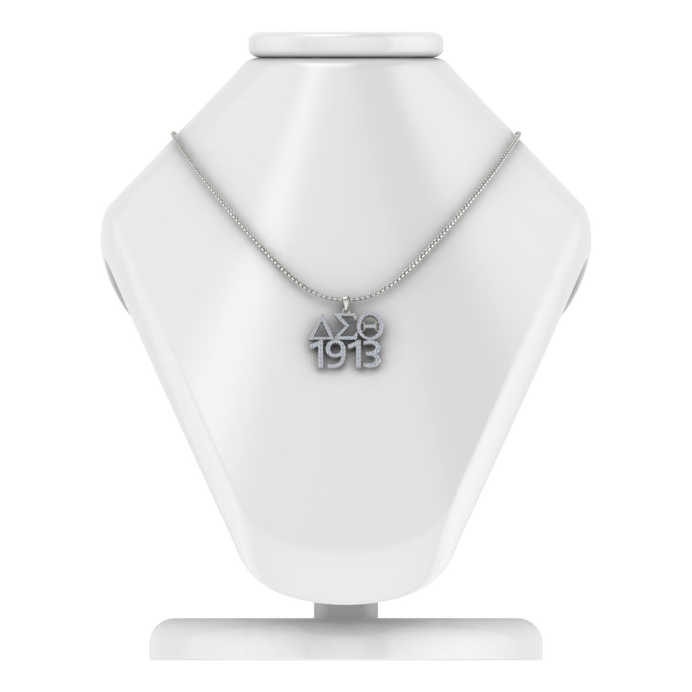 Honor the legacy of Delta Sigma Theta with this dazzling sterling silver crystal pendant, exclusively designed by King Greek. Featuring the iconic Greek letters ΔΣΘ and the founding year 1913, this pendant is a brilliant symbol of sisterhood, scholarship, and service.