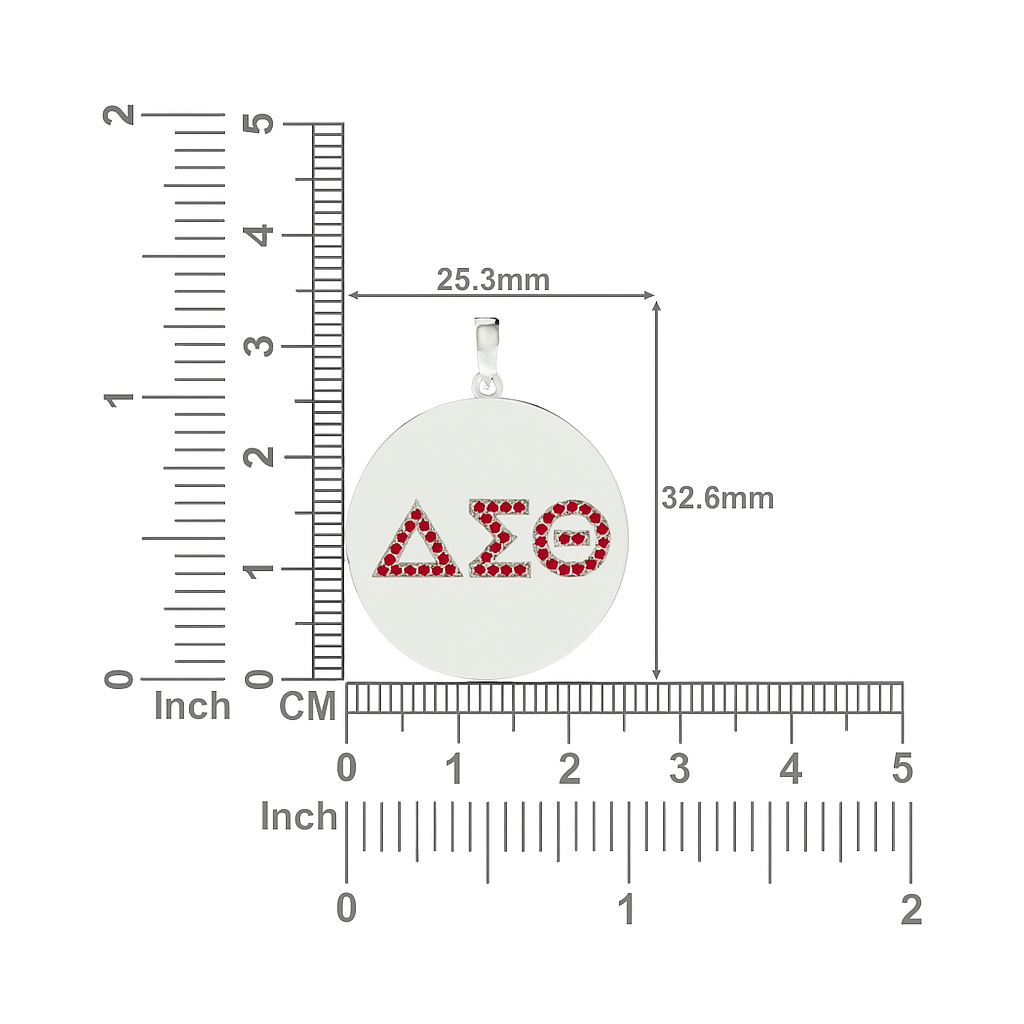 Delta Sigma Theta Sterling Silver Circle Pendant- Red Crystals (P004)