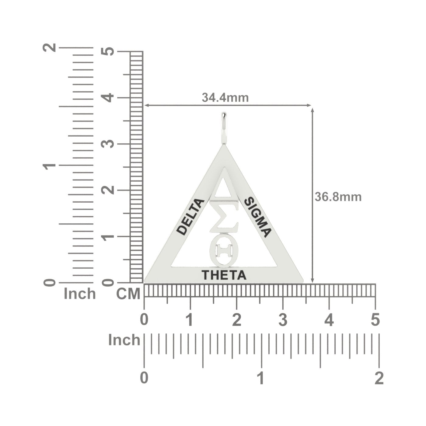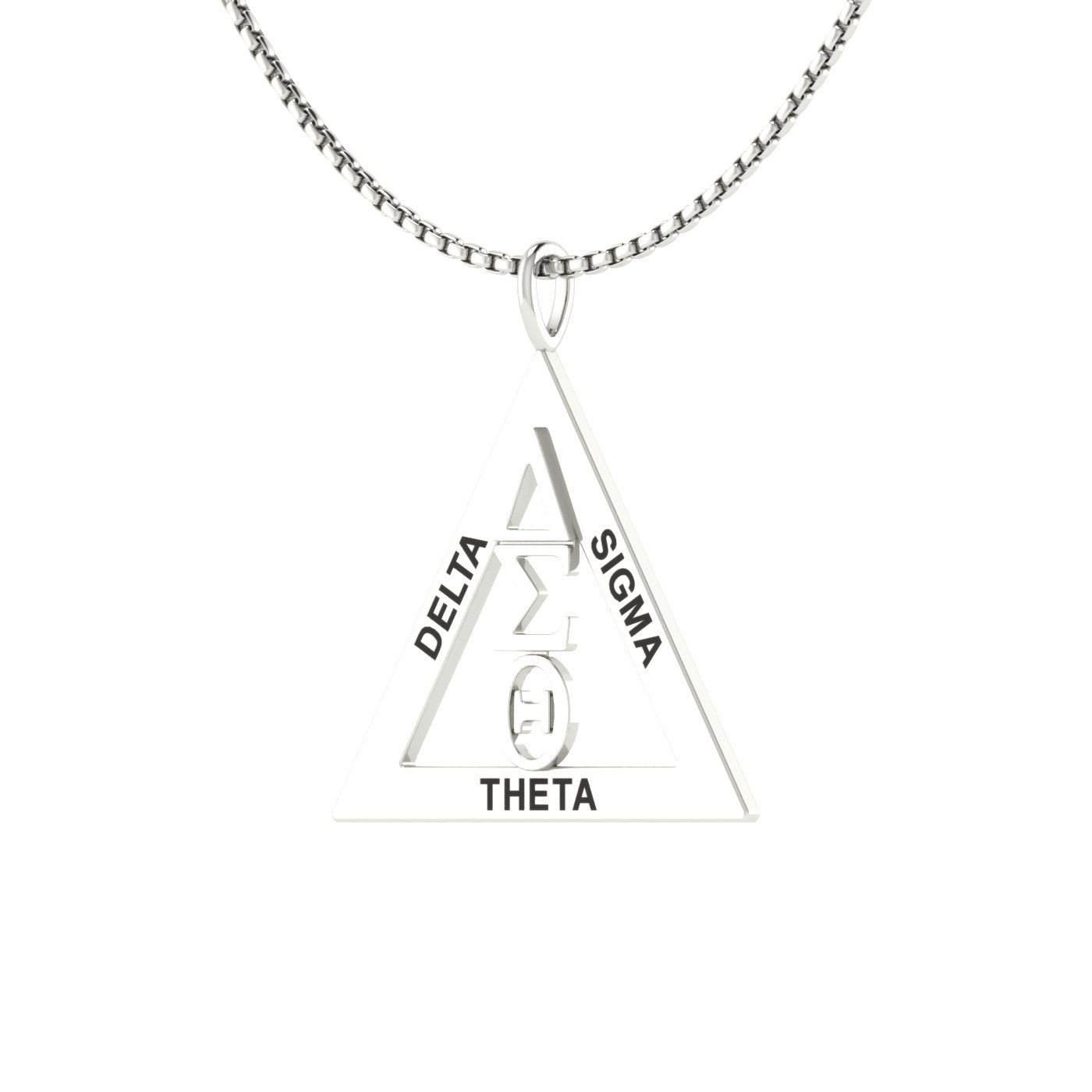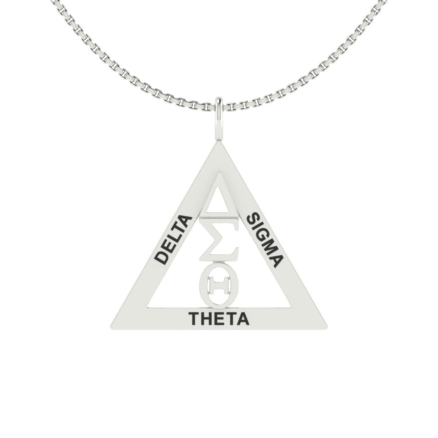 Celebrate over a century of Delta Sigma Theta’s legacy with this sterling silver classic triangle necklace. Expertly crafted, it features the iconic triangle shape measuring 1 1/4" by 1 1/4" This elegant piece honors DST’s founding year, 1913, and embodies sisterhood, scholarship, and service. Please note, the silver chain is sold separately.