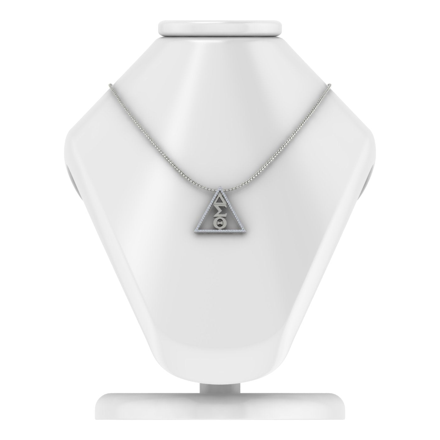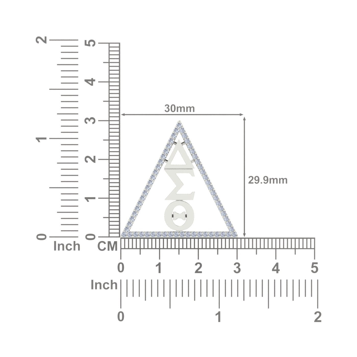 Celebrate the bold heritage of Delta Sigma Theta with this sleek sterling silver triangle pendant, exclusively designed by King Greek. Featuring the iconic Greek letters ΔΣΘ at the center, framed by a border of brilliant cubic zirconia stones, this pendant blends modern elegance with timeless sorority symbolism.