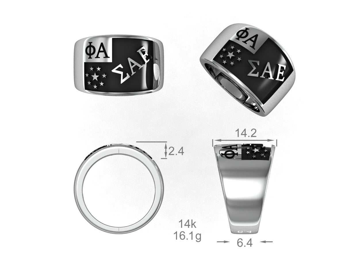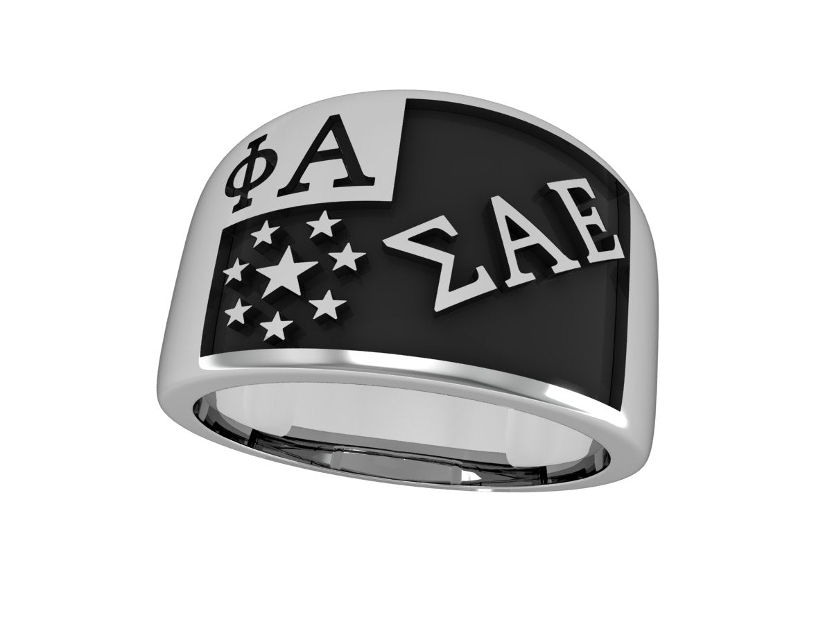 Show your Sigma Alpha Epsilon pride with this bold sterling silver fraternity ring, designed to represent leadership, loyalty, and lifelong brotherhood. Crafted with precision from premium .925 sterling silver, this wide-band ring features deeply engraved SAE Greek letters for a strong and timeless look.