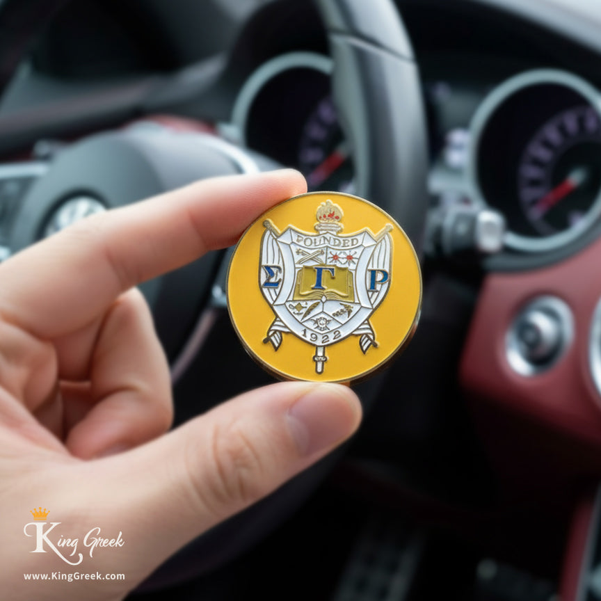 Official SGRho Crest: Detailed enamel design that showcases the proud legacy of Sigma Gamma Rho Sorority, Incorporated®.