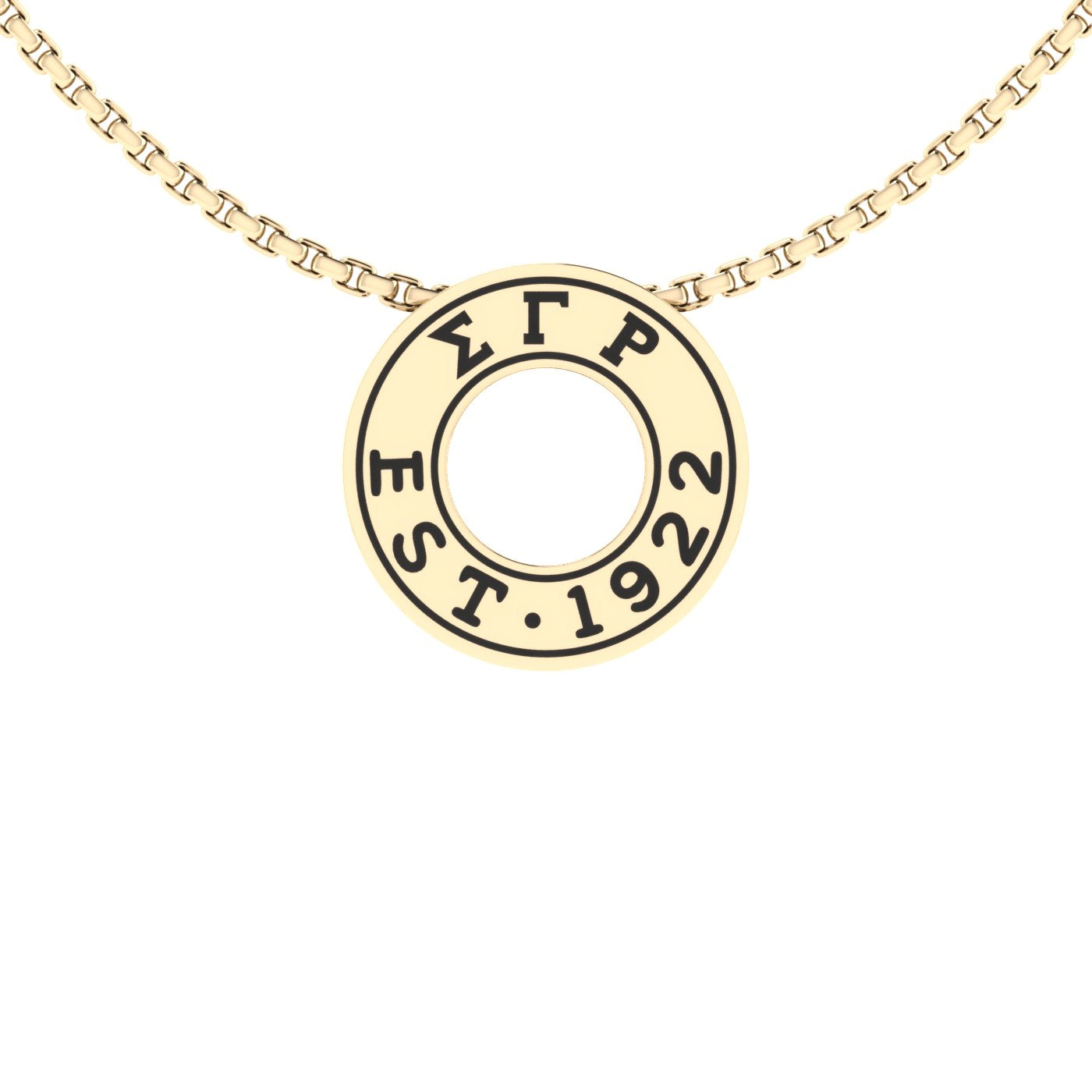 Eternity Circle Design with ΣΓΡ Engraving: Features finely detailed Sigma Gamma Rho Greek letters, representing pride, heritage, and the unbreakable bond among Sorors.
