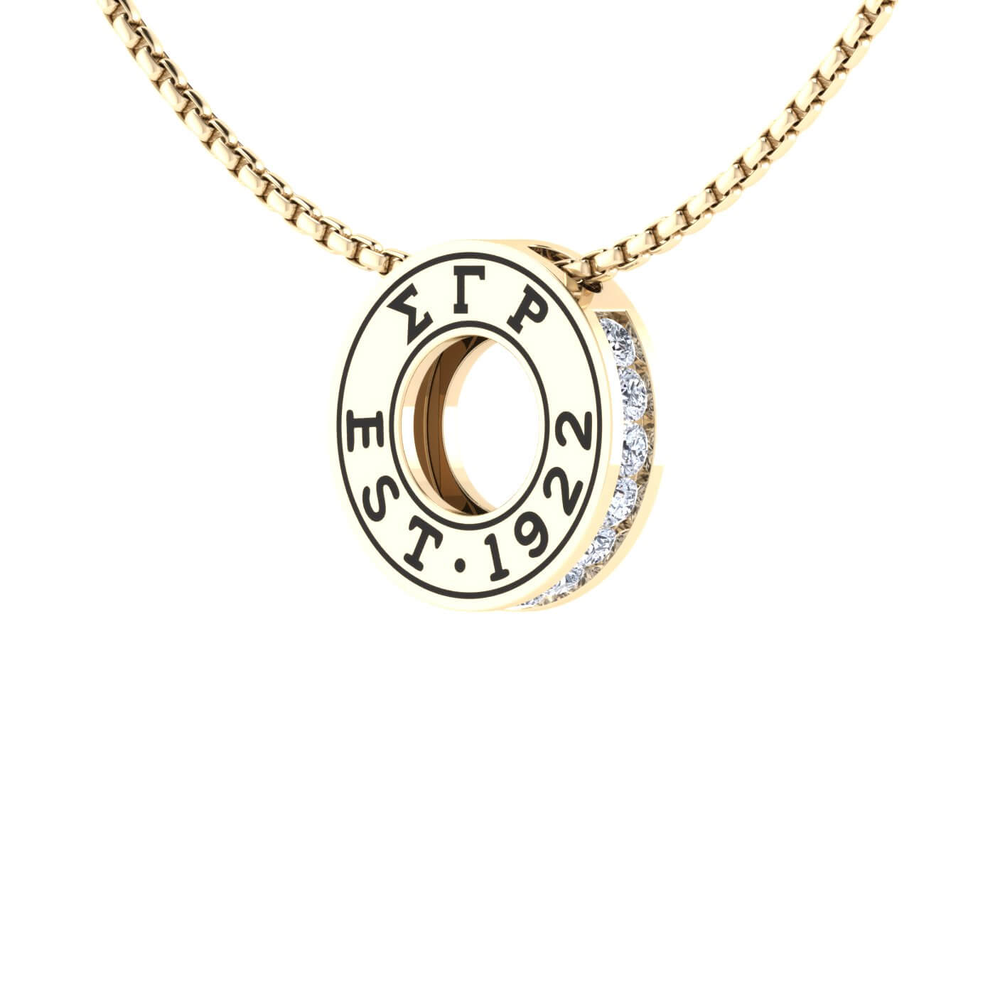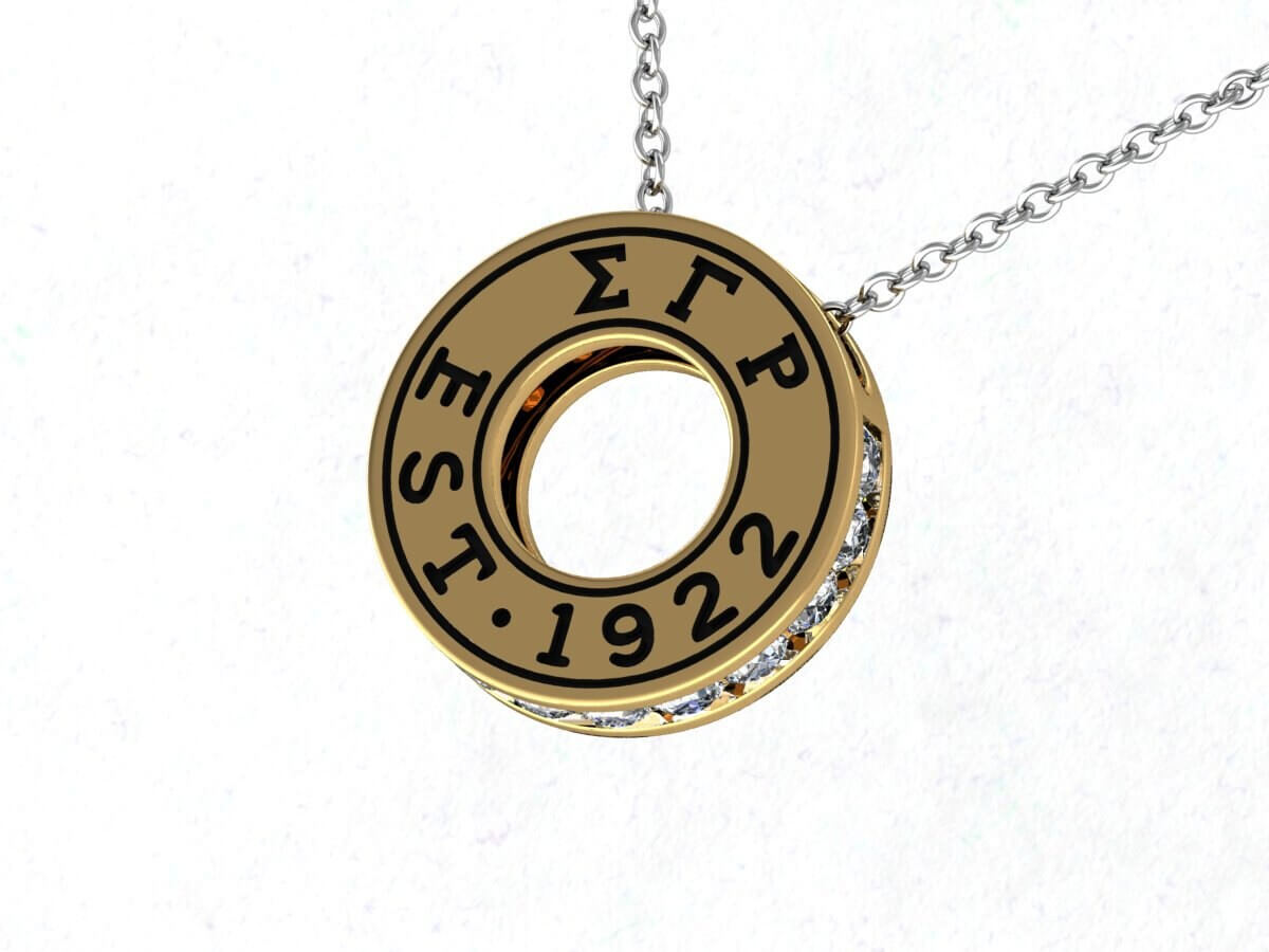 Eternity Circle Design with ΣΓΡ Engraving: Features finely detailed Sigma Gamma Rho Greek letters, representing pride, heritage, and the unbreakable bond among Sorors.