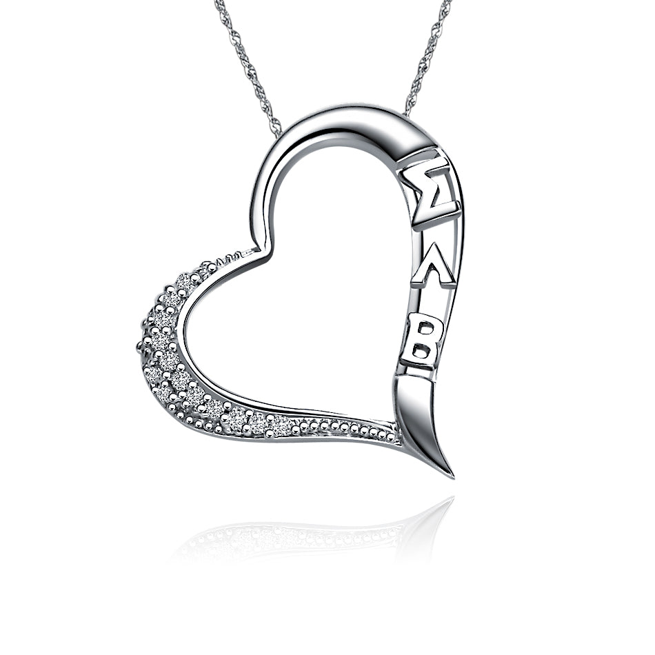 Sweetheart Heart Design: Unique open-heart pendant with the Sigma Lambda Beta Greek letters.