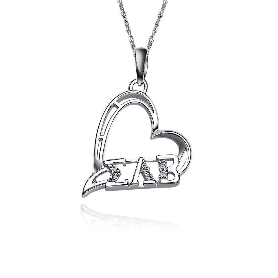 Sweetheart Heart Design: Unique open-heart pendant with the Sigma Lambda Beta Greek letters.